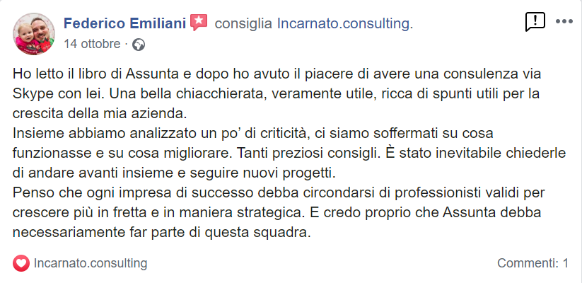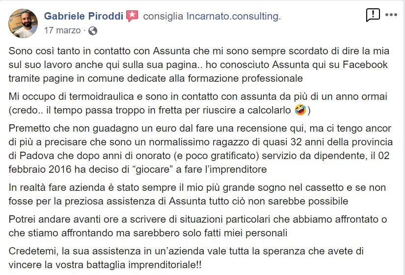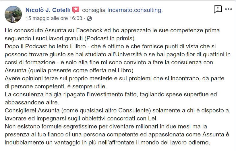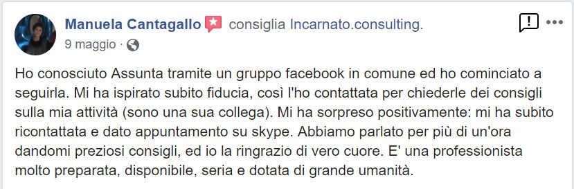 Per qualsiasi altro dubbio, domanda o richiesta scrivi a Laura, la nostra assistente clienti, mandando una mail a info@incarnato.consulting. Grazie.