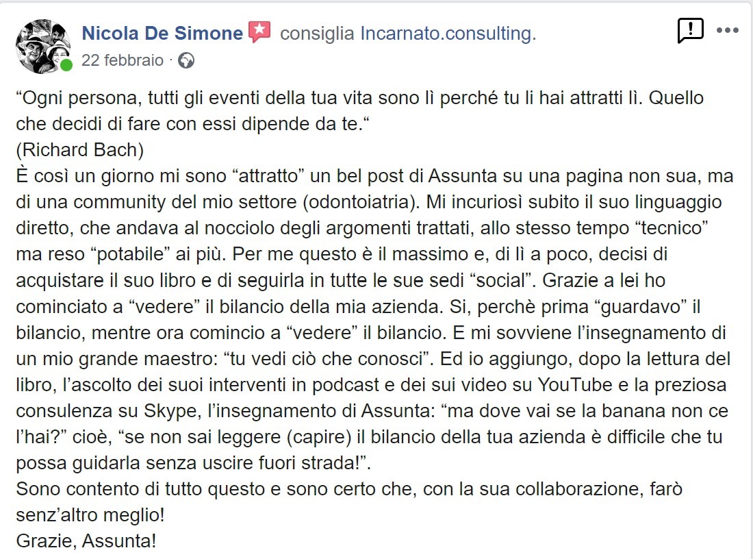 Sono Assunta Incarnato, ex Dottore Commercialista, dal 2017 mi occupo esclusivamente di Strategia aziendale.