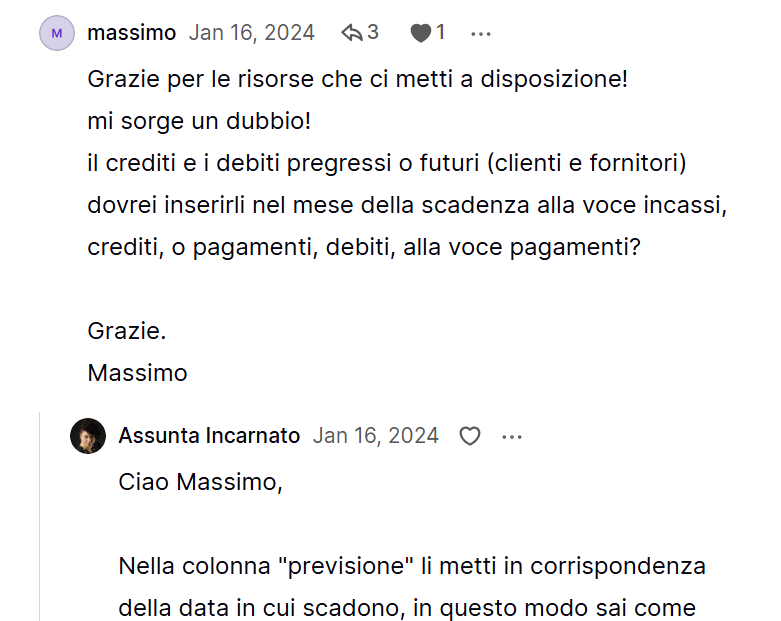 All'interno dell'area riservata troverai l'area commenti, dove potrai postare domande, dubbi, richieste.