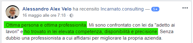 🗣️"Mi sono confrontato con lei da "addetto ai lavori" e ho trovato in lei elevata competenza, disponibilità e precisione."