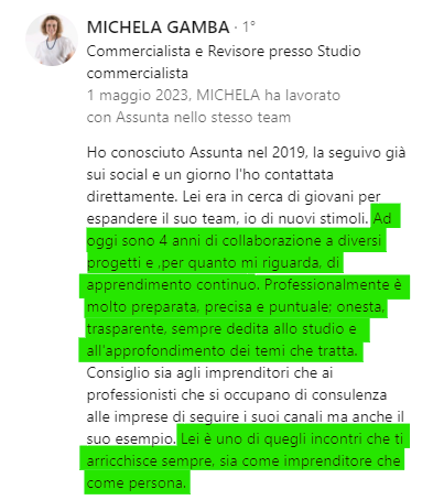 🗣️ "Professionalmente è molto preparata, precisa e puntuale: onesta, trasparente, sempre dedita allo studio e all'approfondimento dei temi che tratta."