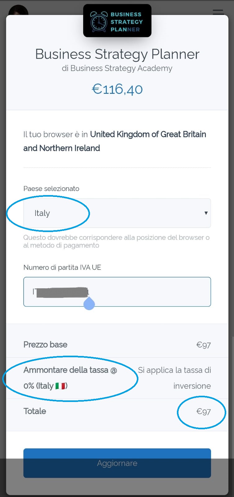 Il sistema ti mostra come prima cosa il prezzo comprensivo di IVA, considerando il Paese nel quale ti trovi.