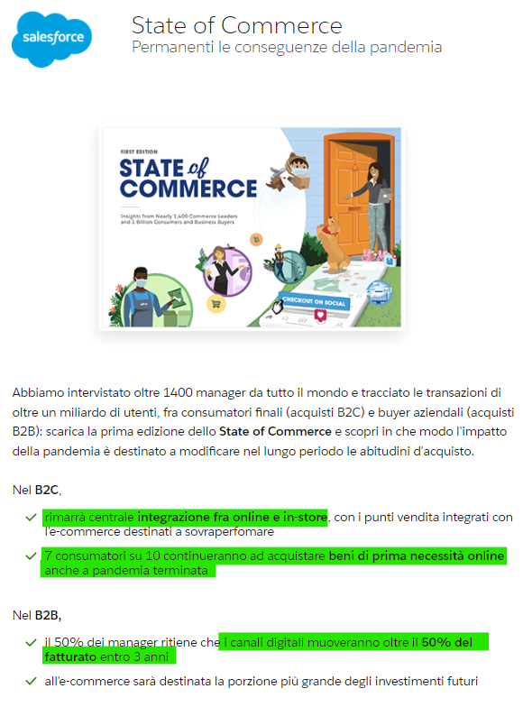 Da un’analisi svolta da Salesforce su un campione di oltre 1400 aziende leader di settore e oltre un miliardo di consumatori a livello globale, è emerso che:
