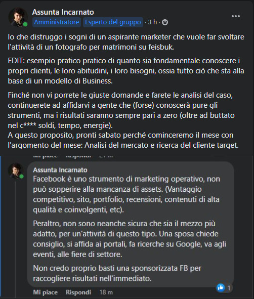 avranno forse tanti follower e riceveranno tanti like e cuoricini, ma NON acquisiranno clienti "buoni";