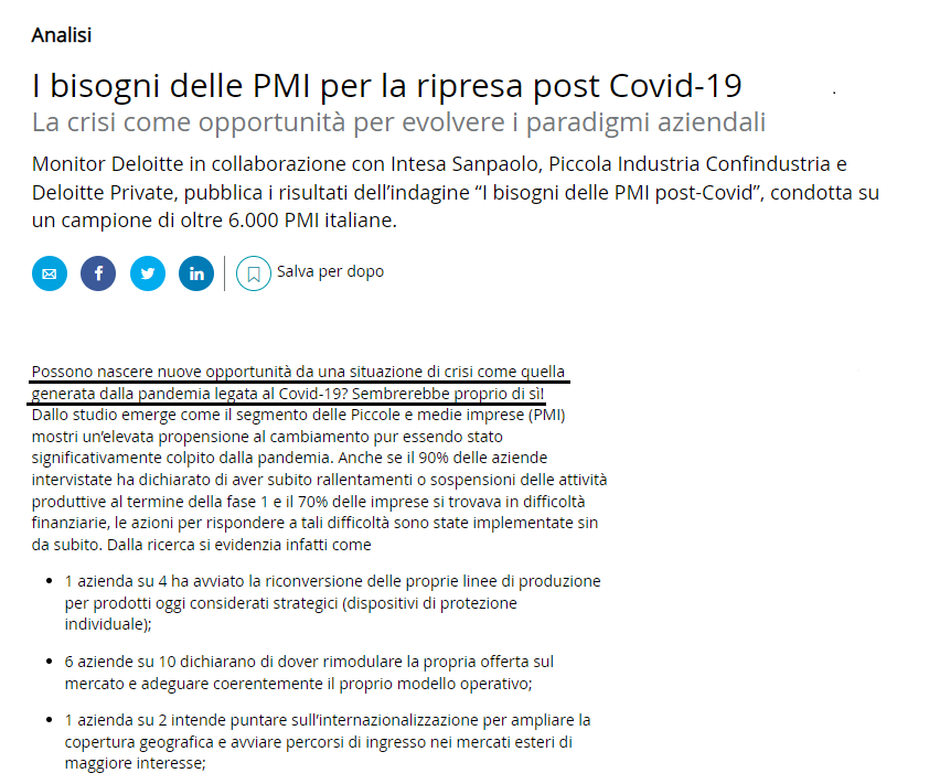Purtroppo, ad oggi le imprese finanziariamente più fragili hanno chiuso per sempre…